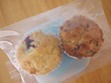 なす・トマト・たまねぎ・にんじん・じゃがいもなどの野菜たっぷりと家で挽いた豚肉のカレー、花ゆでたまご、きゅうりの自家製ピクルス、自家製らっきょう2種、いんげんの佃煮です。おやつはブルーベリーマフィンとバナナチョコマフィンです。