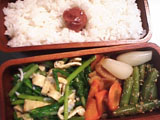 ベランダの植物が心配で、2泊の短期帰郷でしたが、楽しかったです。makのお母さんと、仙台駅前にできた新しいビルで無料でインターネットができるところにも行き、makのお母さんもはじめてこのページを見たのでした(恥ずかしかった・・・) 今日はpenchanのお弁当です。野菜ばっかり。makはまだ夏休み。紅茶プリンは、2つめのレシピでつくってみました。う〜ん、まだ改良が必要かな。