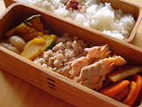かぼちゃの煮物、豆きんとん、鶏ひき肉のそぼろあん、塩鮭、大根とにんじんの醤油ベース漬け、自家製梅干です。おやつはりんごのクランブルケーキです。