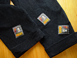 ズボンのすその折り返し部分にアクセントの布をつけるのは、つけるとそれ以外のシャツとあわせるのに苦労するので、コーデュロイの縦横だけかえて同じ生地でつくってみました。