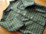 丈は5cm長くしました。もとはパパのシャツでした。ミニチュア化しました。もとの布がいいので、着心地よさそうです。 ステッチもたくさんいれました。